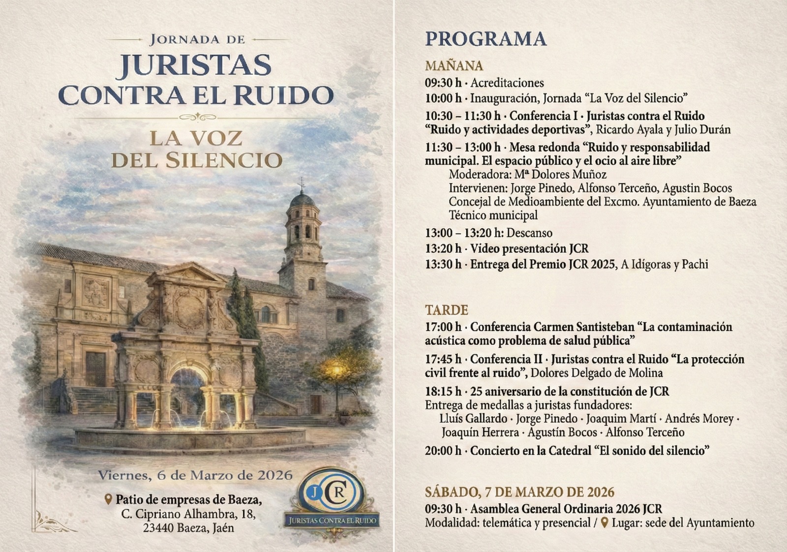 El miércoles 27 de abril de 2022 conmemoramos el Día Internacional de Concienciación sobre el Ruido. Desde la Asociación Nacional de Juristas contra el Ruido nos unimos a esta iniciativa que tiene más de 25 años. En el Aula Abierta, que es gratuita, participarán nuestros juristas, así como ingenieros y peritos acústicos, como es de ver del programa adjunto. ¡Inscríbete! ¡Esperamos tu asistencia!